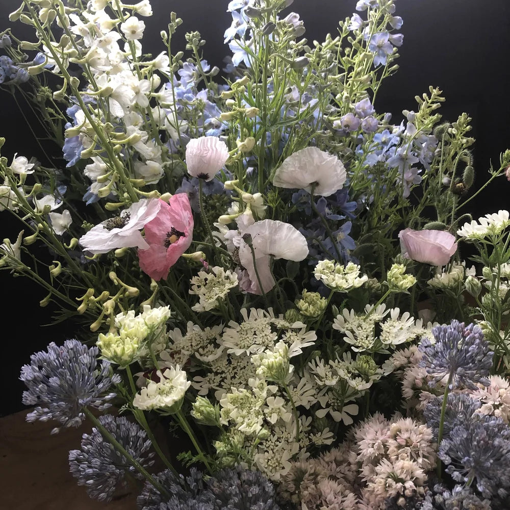 Our arrangements celebrate abundance in its truest form—rich with colour, texture, scent, movement, and life—crafted exclusively from stems grown by us.